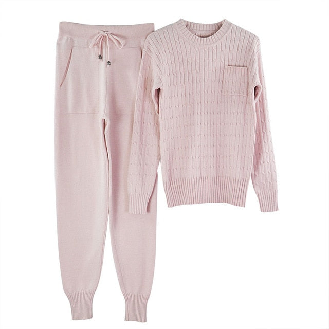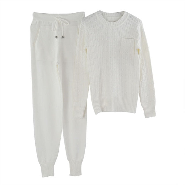 MVGIRLRU Women sweater suit Casual Knitted Sweaters Pants 2 Piece Set Female Tracksuits